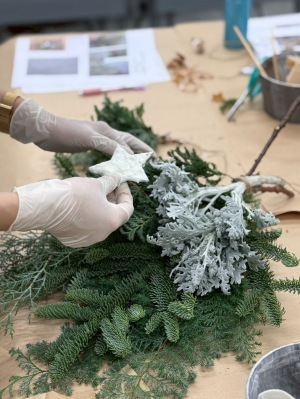 11月29日、共立アカデミーさん後期講座でクリスマスのスワッグ作り講座をいたしました。